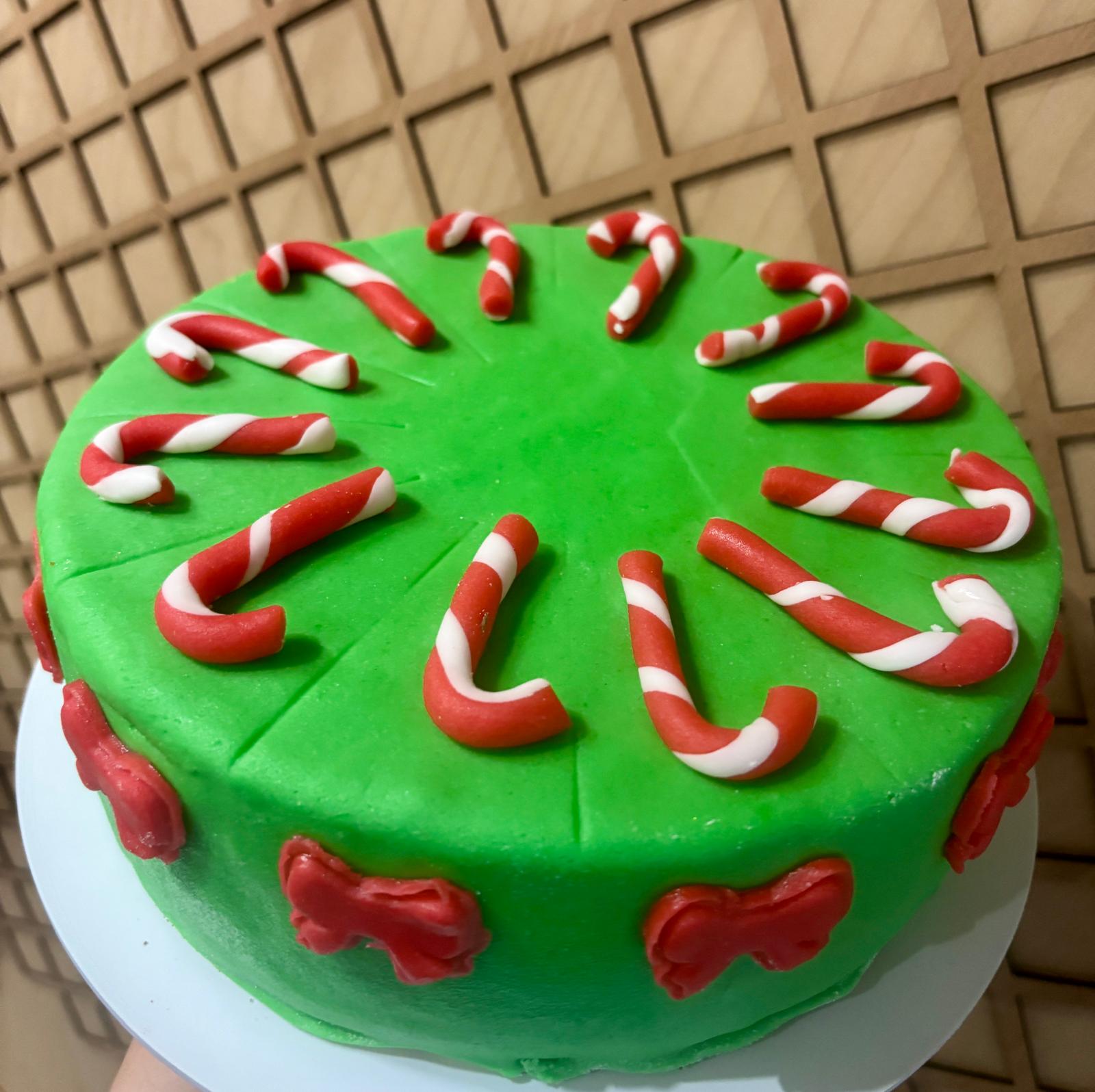 Sváteční dort se světlým korpusem, džemem, vanilkovým krémem a potažený marcipánem.